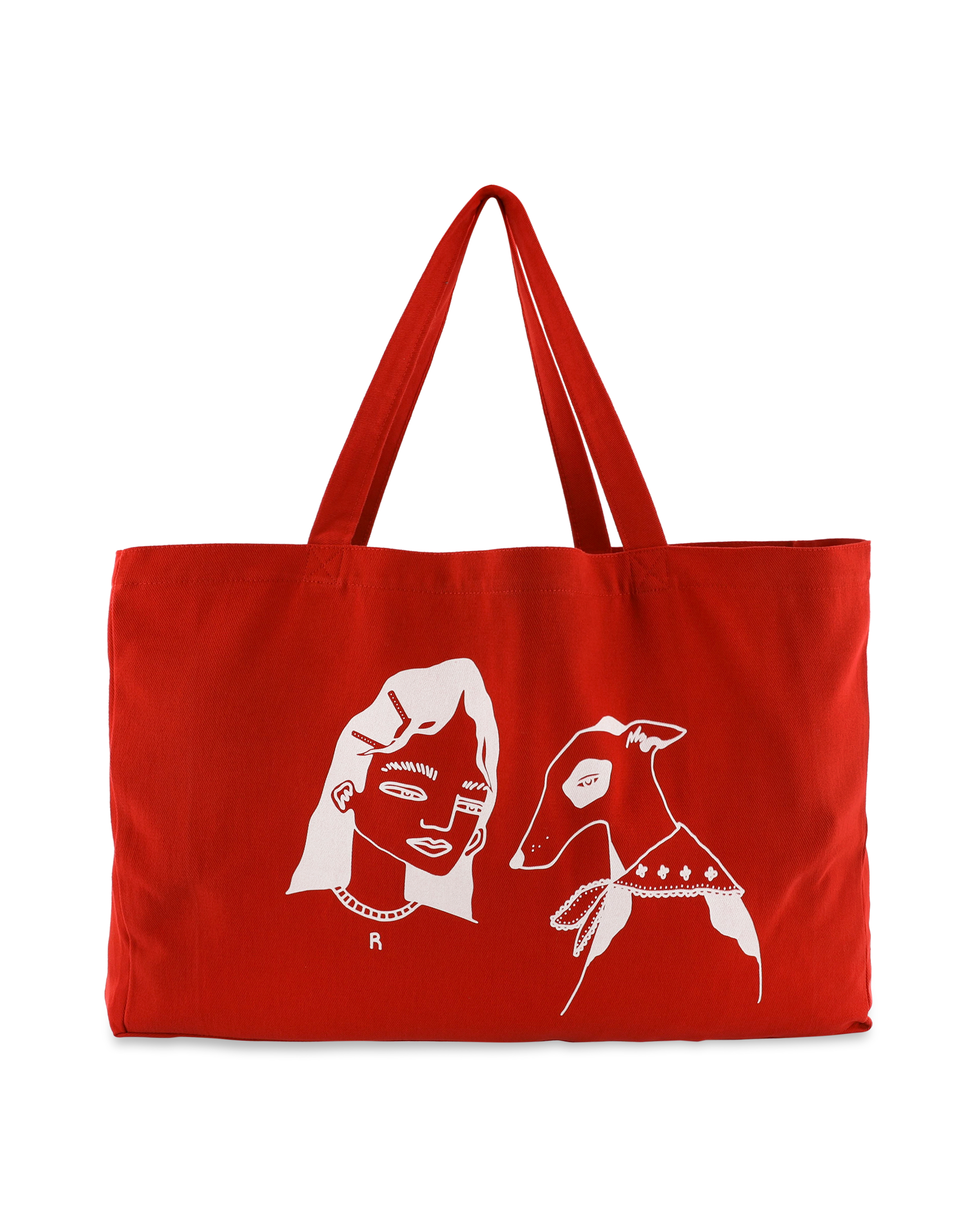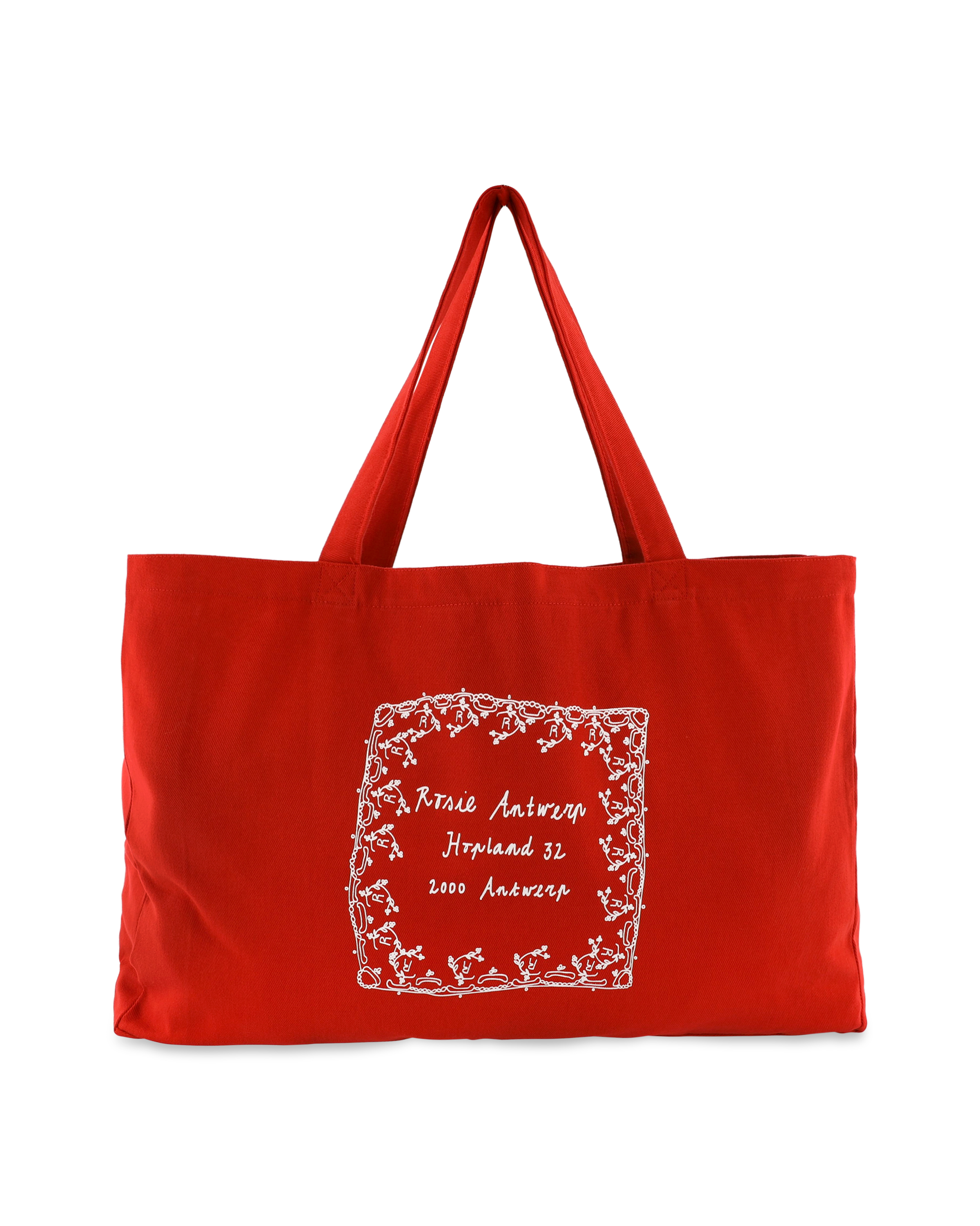 A red tote bag from Rosie Antwerp.